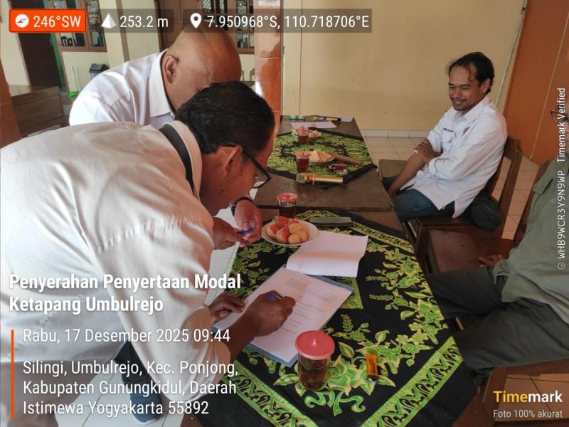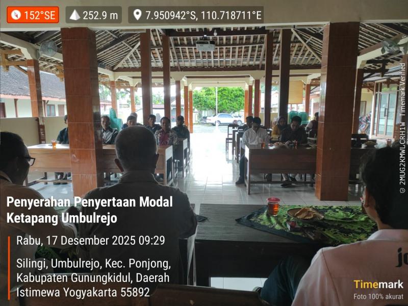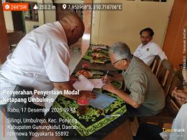Umbulrejo ( SIDA ), Pemerintah Kalurahan Umbulrejo pada Rabu, 17 Desember 2025, menyalurkan Penyertaan Modal untuk Ketahanan Pangan tingkat Kalurahan kepada BUMKal “Maju Makmur Umbulrejo” sebesar Rp 286.000.000,-.